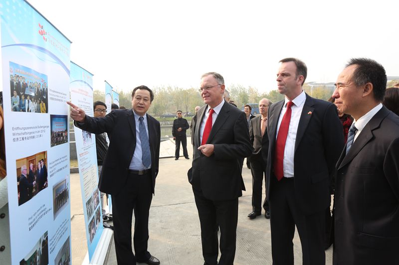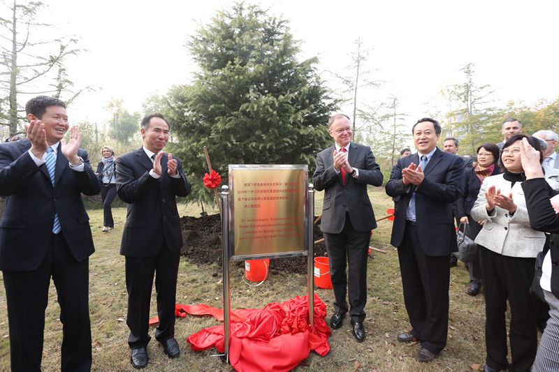種植友誼樹(右二:斯特凡?魏爾州長) 為友誼樹揭牌 參觀“合肥學院對德合作交流展” 親切交流