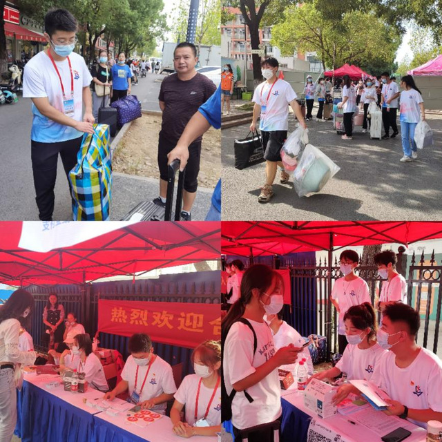清晨七點,迎新志愿服務隊的學生黨員們準時到達迎新地點,統一身著志愿者服,佩戴黨員徽章,樹立黨員形象,彰顯黨員風范。黨員同志們積極奉獻自我,不斷穿梭于學校迎新大門和宿舍樓之間,完成新生入學指引、學校簡介、行李搬運等一系列服務工作。從清晨到傍晚,各支部學生黨員熱心幫助、耐心解答、悉心指導、細心搬運,以飽滿的熱情和無私的心態對待每項工作,在為同學服務的過程中不斷踐行初心與使命,展現責任與擔當,受到全校師生的一致好評。