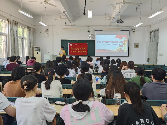 2024年5月16日中午,經濟與管理學院工商管理學生黨支部在6棟101教室開展第十期入黨積極分子交流研討會,與支部黨員共同學習交流研討《中國共產黨紀律處分條例》。
