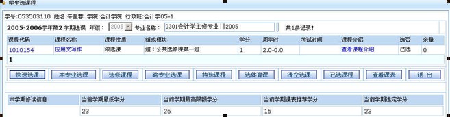 學生選課項目包括:本專業(yè)選課、選修課程、跨專業(yè)選課。